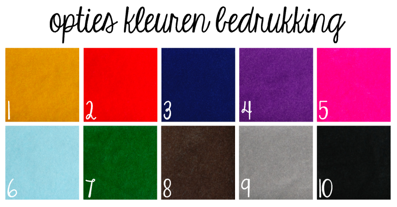 Wilt u graag een ander lettertype of kleur van bedrukking? Dan bekijken we graag de opties.