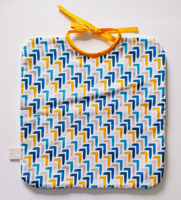 Smossende kinderen en ouders worden de beste vrienden aan tafel door onze handige slabben. De slabben worden handgemaakt met bakken vol liefde. Aan de voorkant zit katoen met een leuke print, de achterkant is gemaakt uit zachte badstof. De linten zorgen ervoor dat je de slab op verschillende lengtes kunt gebruiken en deze zo mee kan meegroeien met het kindje.