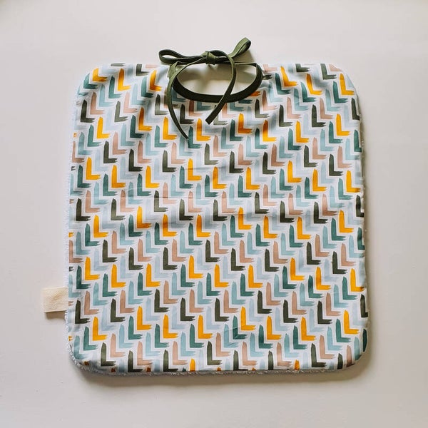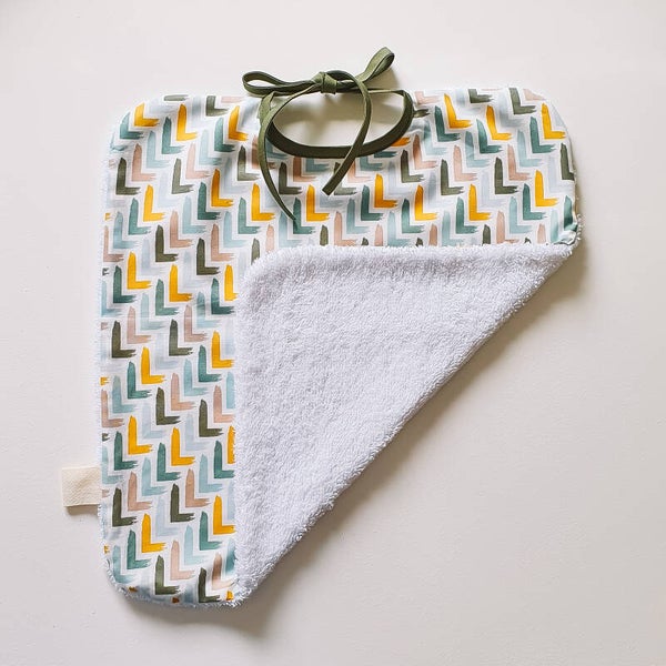 Smossende kinderen en ouders worden de beste vrienden aan tafel door onze handige slabben. De slabben worden handgemaakt met bakken vol liefde. Aan de voorkant zit katoen met een leuke print, de achterkant is gemaakt uit zachte badstof. De linten zorgen ervoor dat je de slab op verschillende lengtes kunt gebruiken en deze zo mee kan meegroeien met het kindje.